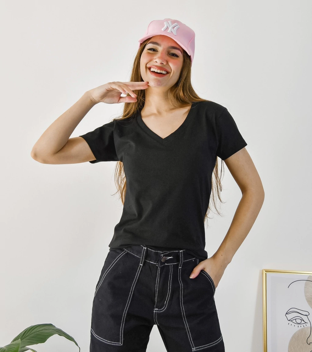 Remera Anastasia: elegancia y comodidad en escote V Descubrí la Remera Anastasia, disponible en talles del S al XXL, diseñada para realzar tu figura con un favorecedor escote en V. Disponible en una variedad de colores, es perfecta para cualquier ocasión, combinando estilo y versatilidad. Confeccionada con materiales de alta calidad, ofrece comodidad durante todo el día. Ideal para lucir con jeans, faldas o shorts, sumá un básico imprescindible a tu local.